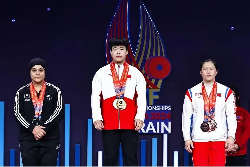 当地时间12月13日,在巴林举重世锦赛女子81公斤级比赛中,中国选手廖桂芳六次试举全部成功,包揽抓举、挺举和总成绩三枚金牌。
