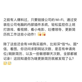 使用公司电脑或连接内部wifi,真被监控得这么详细?有网友透露,大公司一般后台会安装安全管理软件炒股借钱机构,另外网络上还会有行为管理设备,不管你干啥,都清清楚楚的掌握。