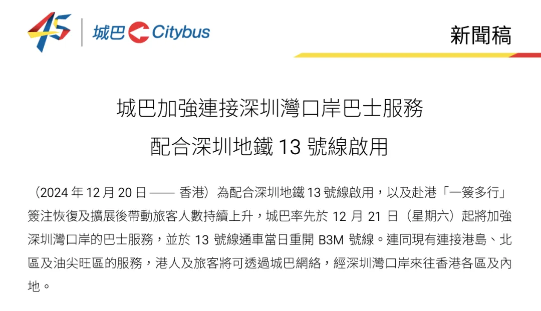 为了让两地交通衔接更加顺畅,香港城巴也官宣称,在今天(28日)重开已经停运了差不多快五年的B3M线。